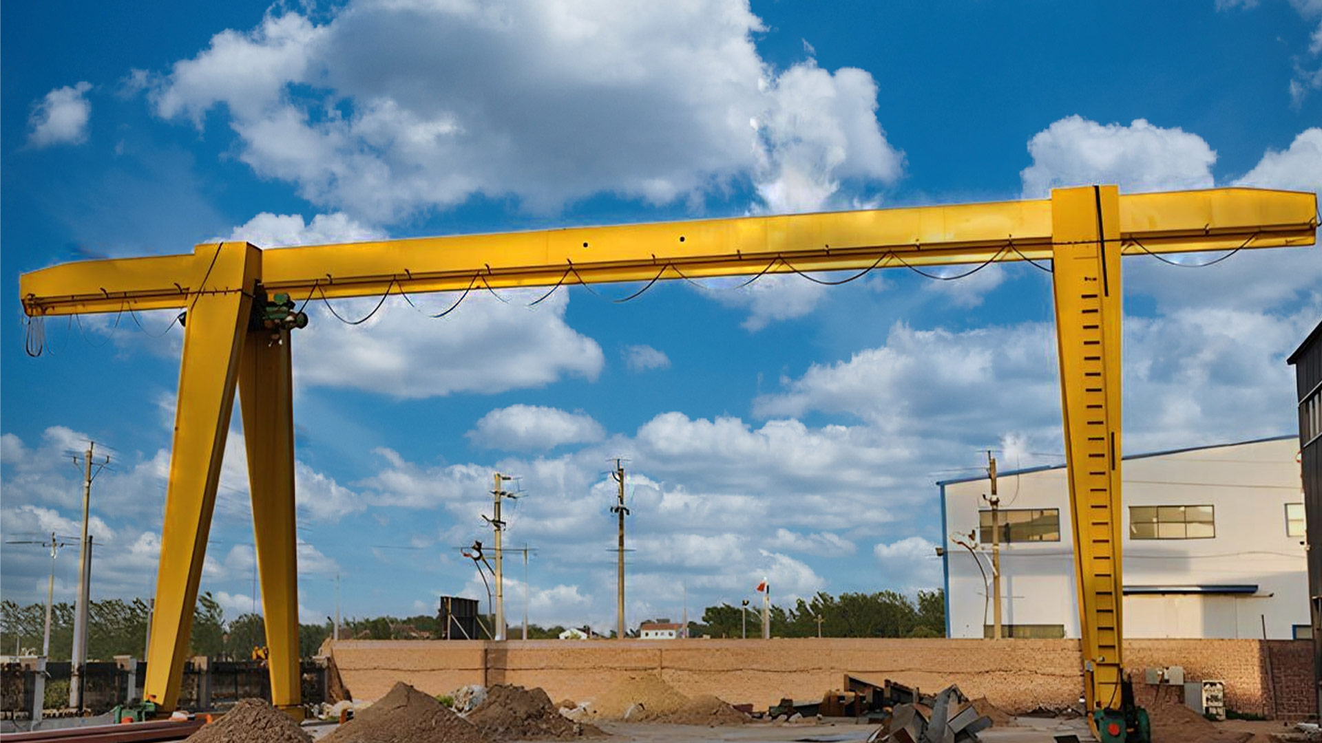 MH型電動葫蘆單梁門式起重機(龍門吊)主要由電動葫蘆、大車運行機構(gòu)、門架、電氣等部分組成,是一種有軌運行的中小型起重機;其主梁、支腿形式為箱型梁;本產(chǎn)品采用地面操縱和室內(nèi)操縱兩種形式設計,操作簡單方便。