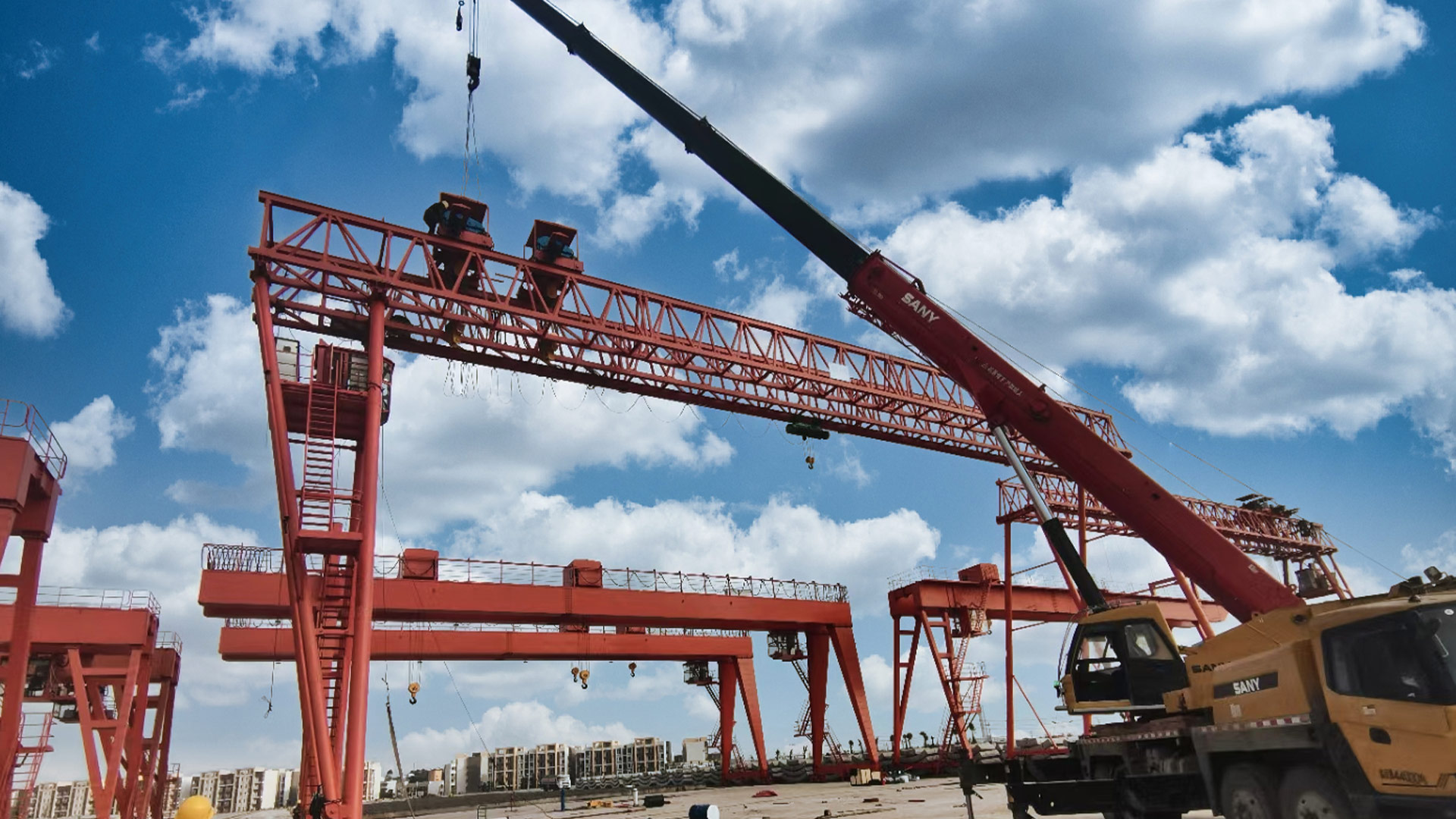 MELQ花架雙梁起重機是有軌運行的中小型起重設(shè)備,主要由門架(主梁、支腿、下橫梁等)、起升機構(gòu)、運行機構(gòu)及電控部分組成,以電動葫蘆作為起升機構(gòu),工作時沿主梁工字鋼下翼緣運行。門架結(jié)構(gòu)為桁架桁架自重輕,抗風(fēng)能力強。整機具有自重輕、結(jié)構(gòu)簡單、安裝維修方便等特點,適用于中小起重量范圍內(nèi)的廠礦、貨場及倉庫等室外場所作一般裝卸吊運工作,禁止在有易燃、易爆及充滿腐蝕性氣體的環(huán)境中工作。